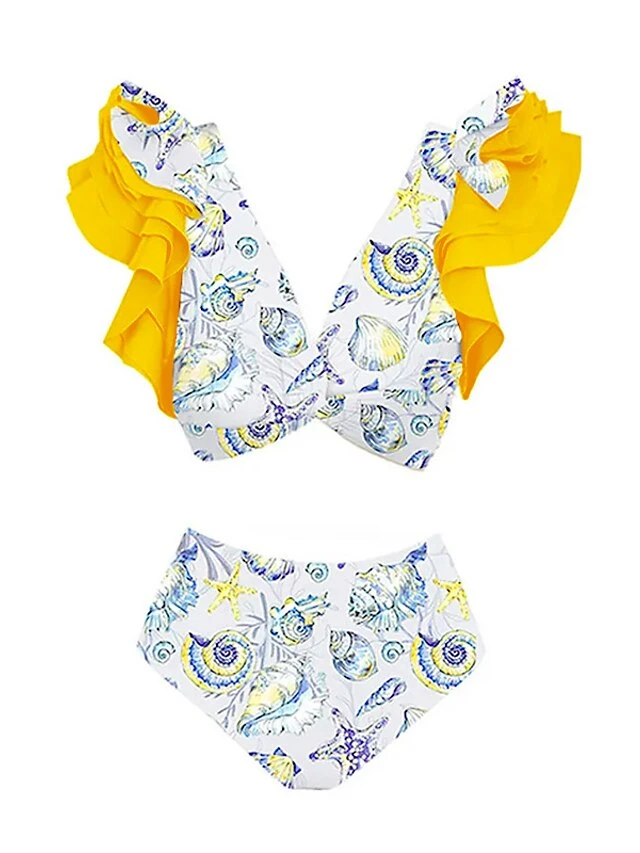 Women’s Swimwear Tankini Monokini Bathing Suits Normal Swimsuit Ruched 2 Piece Floral Print Multicolor Yellow Padded Strap Bathing Suits New Hawaiian Sexy