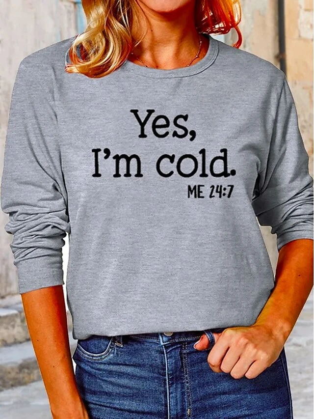 Women’s T Shirt Tee Cotton Black White Yellow Letter Print Long Sleeve Daily Basic Round Neck Regular Fit Spring &Fall