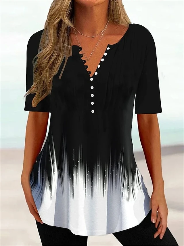 Women’s T Shirt Tee Henley Shirt Black White Blue Floral Button Print Short Sleeve Holiday Weekend Vintage Tunic Basic Round Neck Regular Fit Floral