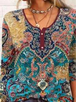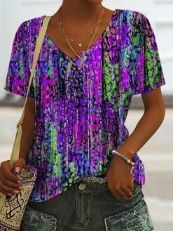 Women’s T Shirt Tee Short Sleeve Daily Basic V Neck Regular Cotton Bohemian Theme S