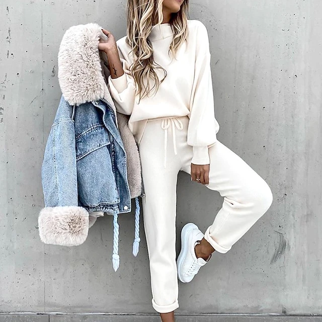 Women’s Tracksuit Jogging Suit Casual Athleisure 2pcs Winter Long Sleeve High Neck Thermal Warm Running Walking Sportswear Solid Colored Track Pants White Black Purple Pink Grey Khaki Activewear