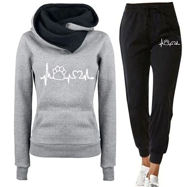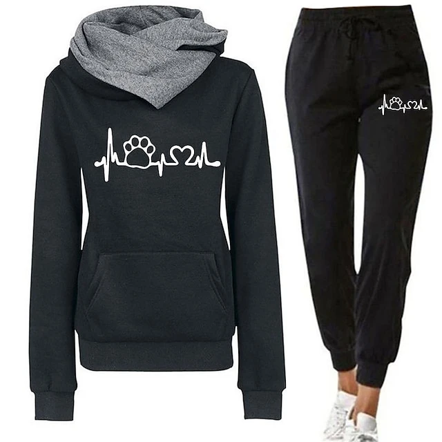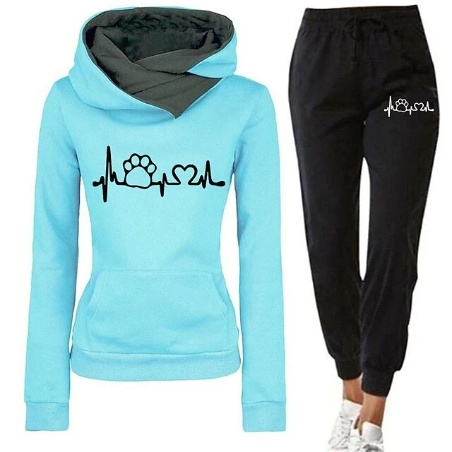 Women’s Tracksuit Sweatsuit 2 Piece Athletic Winter Long Sleeve Thermal Warm Breathable Moisture Wicking Fitness Running Jogging Sportswear Activewear Heart Blue And White Green And Black Black