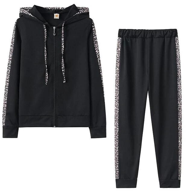 Women’s Tracksuit Sweatsuit 2 Piece Full Zip Casual Winter Long Sleeve Thermal Warm Breathable Moisture Wicking Fitness Running Jogging Sportswear Activewear Leopard White Black / Hoodie / Athleisure