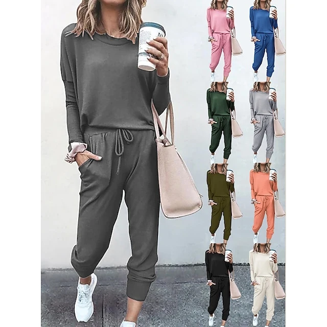 Women’s Tracksuit Sweatsuit Drawstring Athleisure Long Sleeve Polyester Soft Running Jogging Sportswear Activewear Black Rosy Pink Watermelon / Sweatshirt / Stretchy
