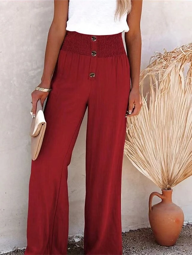 Women’s Wide Leg Linen Pants Chinos Full Length Cotton And Linen Baggy Micro-elastic High Waist Vacation Streetwear Street Casual Wine Black S M Summer Fall