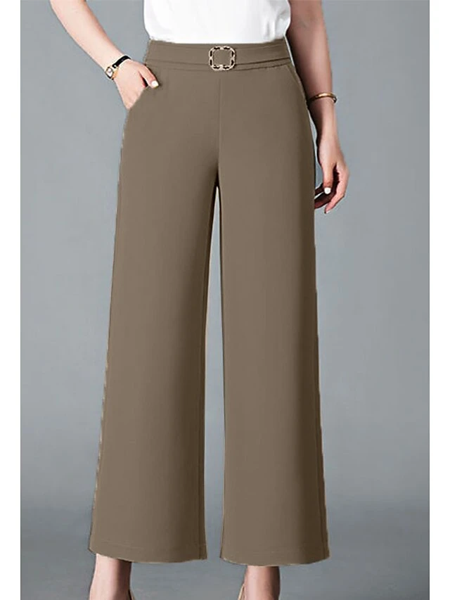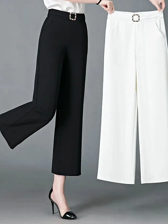 Women’s Wide Leg Pants Trousers Baggy Full Length Pocket Baggy Micro-elastic High Waist Casual Comfort Casual Holiday Black White XL 2XL Summer Spring